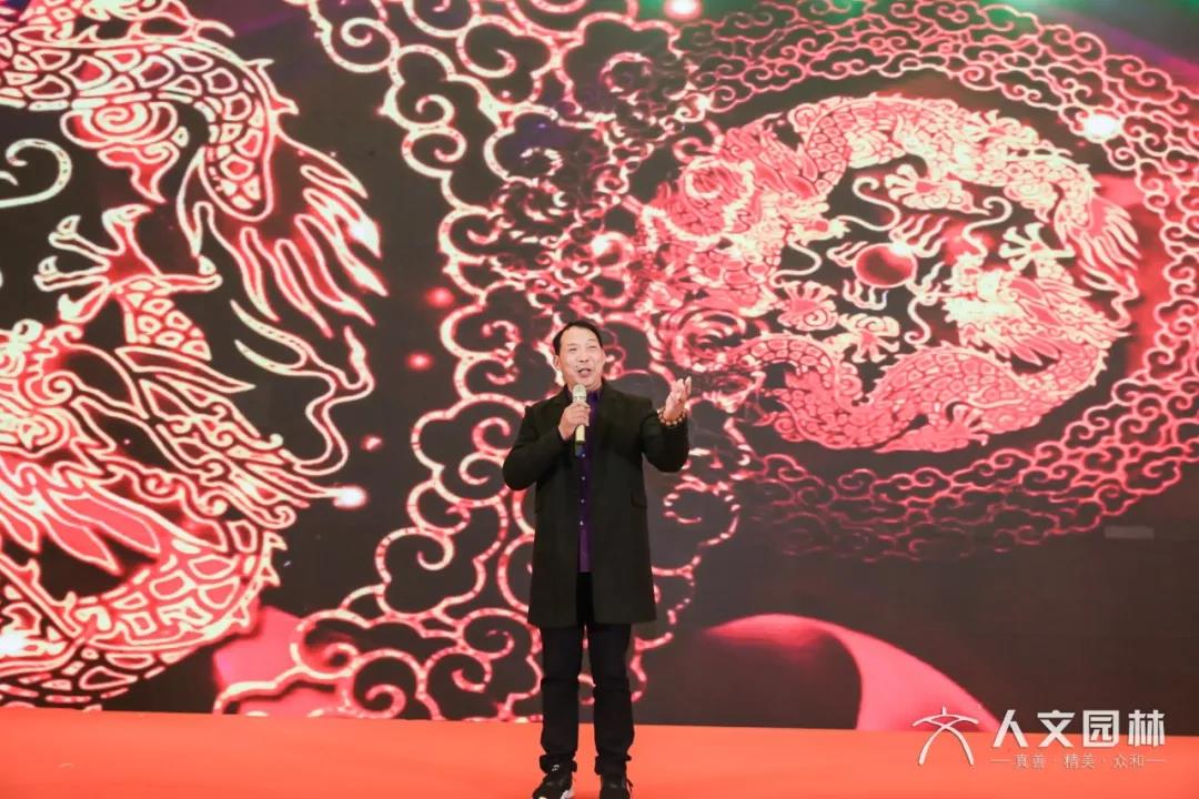 晚上18點00分,迎春晚會正式開始。陳勝洪董事長上臺致新春賀詞。他首先代表人文園林對到場的各位領導、各位嘉賓、各位朋友表示熱烈的歡迎,對諸位一直以來的關心和支持表示衷心的感謝!其次感謝了風雨同舟的人文全體員工和在背后默默奉獻的人文家屬,特別是此時此刻,還堅守在工作崗位的一線人文人,他們是最辛苦的人!