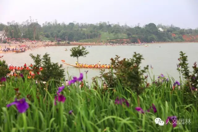 當(dāng)天恰逢青嵐湖森林公園建成后的第一個(gè)端午時(shí)節(jié),進(jìn)賢縣沿湖村莊居民在月亮灣景區(qū)舉行了傳統(tǒng)習(xí)俗活動(dòng)——賽龍舟。鑼鼓喧天,鞭炮齊鳴是龍船下水之前的儀式,吸引了當(dāng)?shù)鼐用窈陀慰颓皝碛^看。